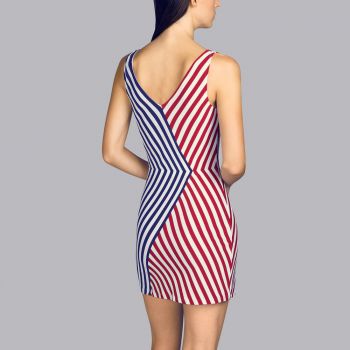 Red, une combinaison de rayures rouges et bleues sur fond blanc dans un style très tendance aux couleurs lumineuses.
